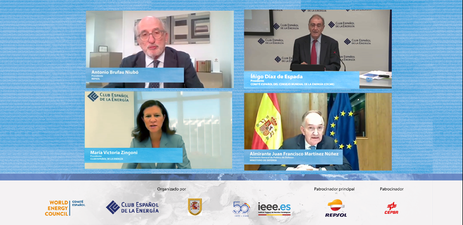 El Comité Español del Consejo Mundial de la Energía (CECME), el Club Español de la Energía (ENERCLUB) y el Instituto Español de Estudios Estratégicos (IEEE), y el Centro Superior de Estudios de la Defensa Nacional (CESEDEN), presentaron el pasado 27 de mayo, de forma virtual, la octava edición de la publicación "Energía y Geoestrategia". El evento contó con las intervenciones de Antonio Brufau, presidente de Repsol; Iñigo Díaz de Espada, presidente del CECME; María Victoria Zingoni, presidenta de ENERCLUB,y Juan Francisco Martínez, Almirante y secretario general de Política de Defensa, del Ministerio de Defensa.